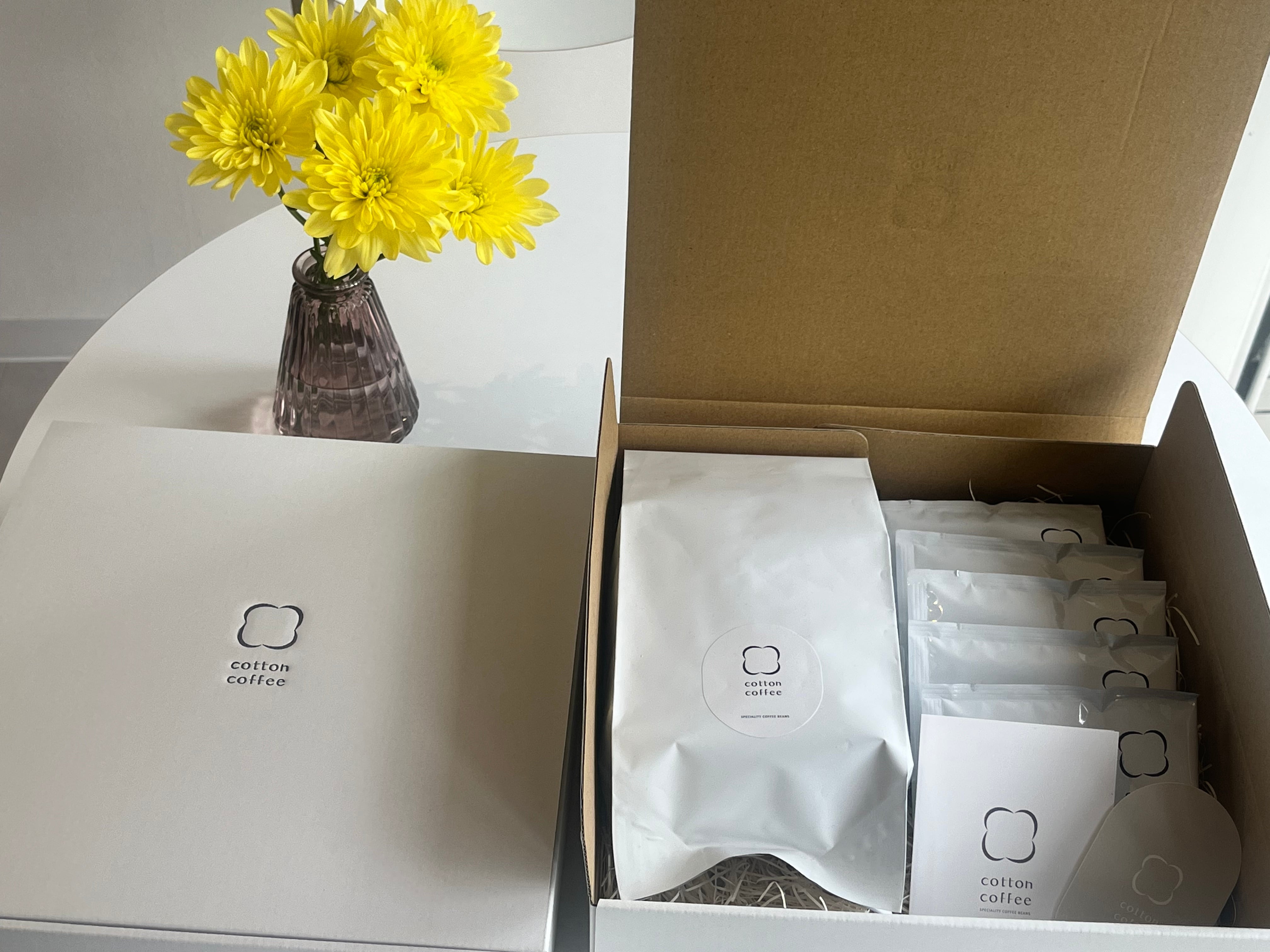 特別な方への贈り物や、自分へのご褒美にぴったりな「ギフトボックス」は、選りすぐりのコーヒー豆または粉と、ドリップバッグのセットをご自由に組み合わせてお楽しみいただける商品です。お好きなコーヒーオプションを2種類合わせたり、ドリップバックとセットにしたりと、お客様のご要望にお応えします。心温まる贈り物をぜひご体験ください。